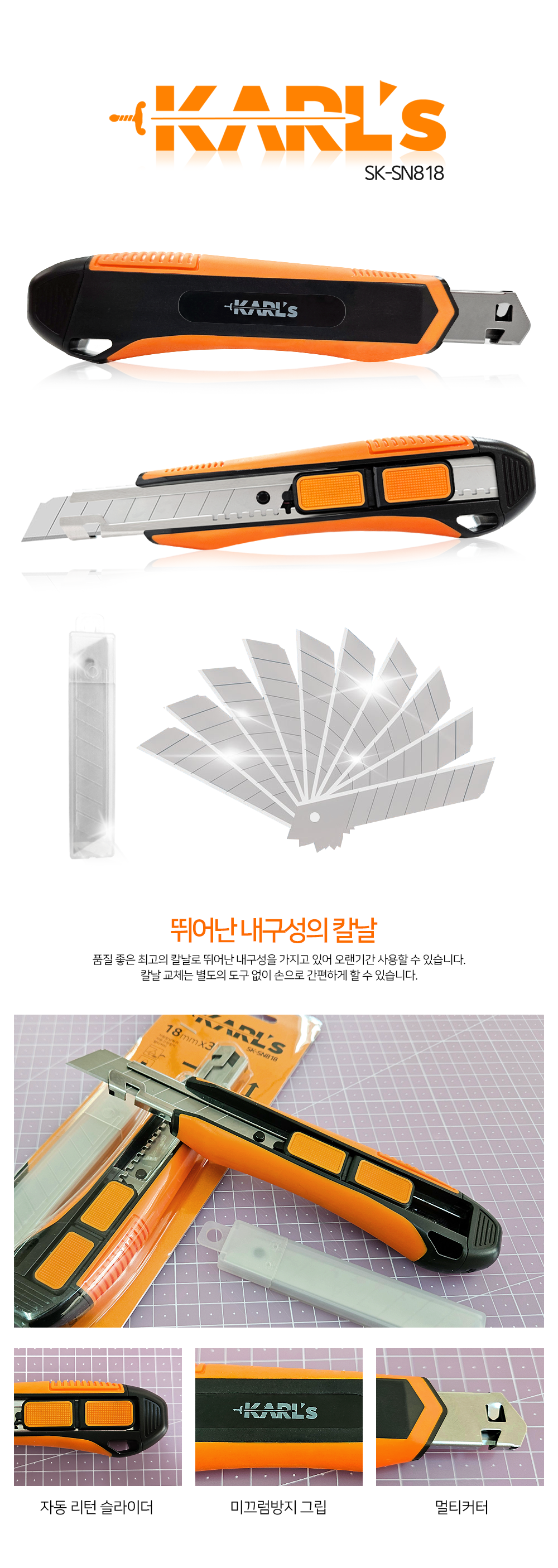 칼스 고무그립 자동리턴 안전 커터칼 18mm