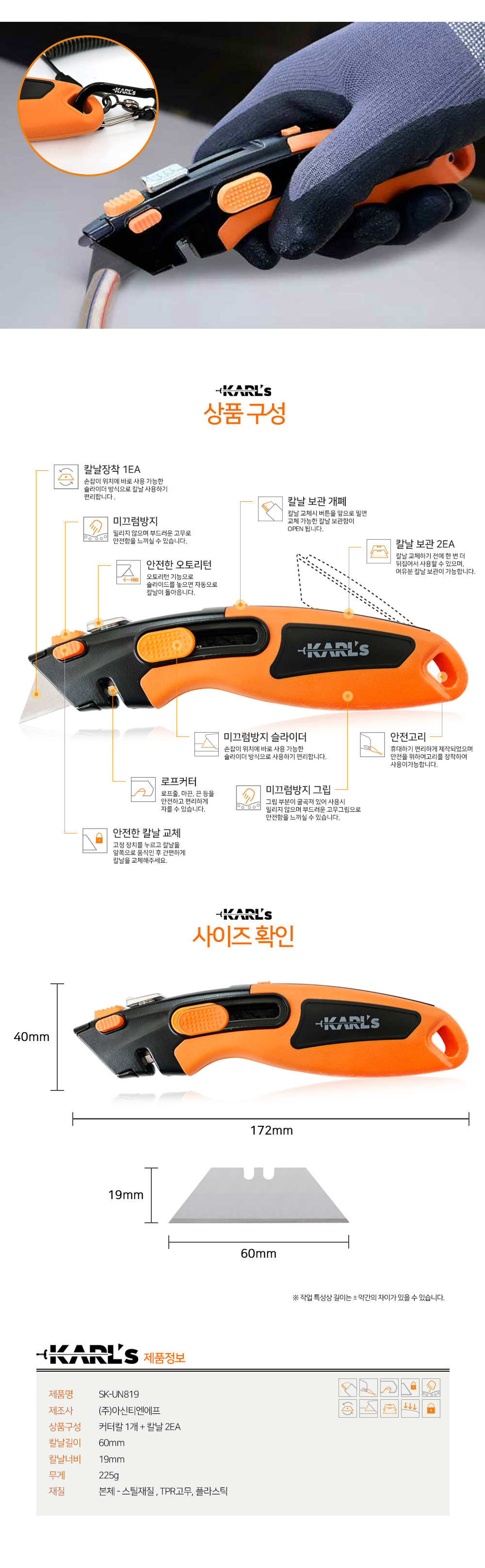 칼스 고무그립 유틸리티 나이프