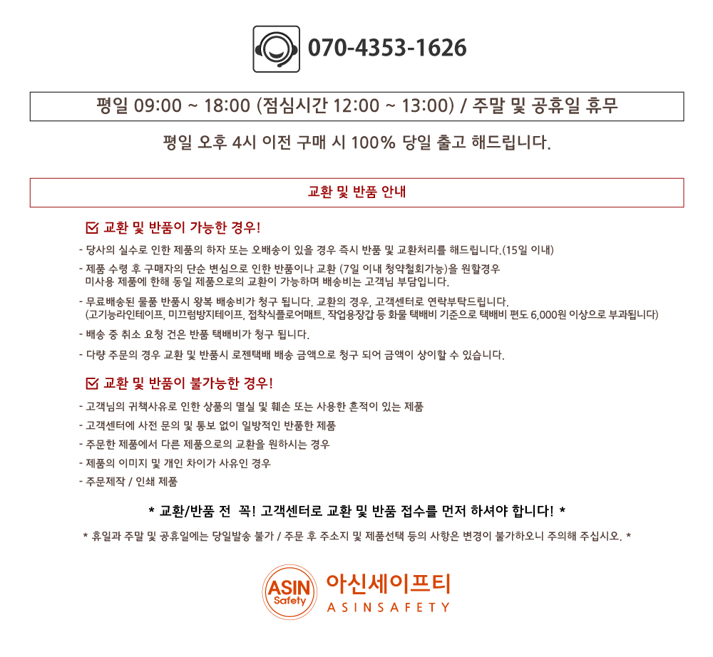 주소 : 경기도 시흥시 희망공원로195 아신세이프티 ㅣ 고객센터 : 070-4353-1648, 팩스 : 031-496-9684